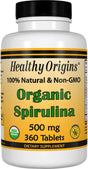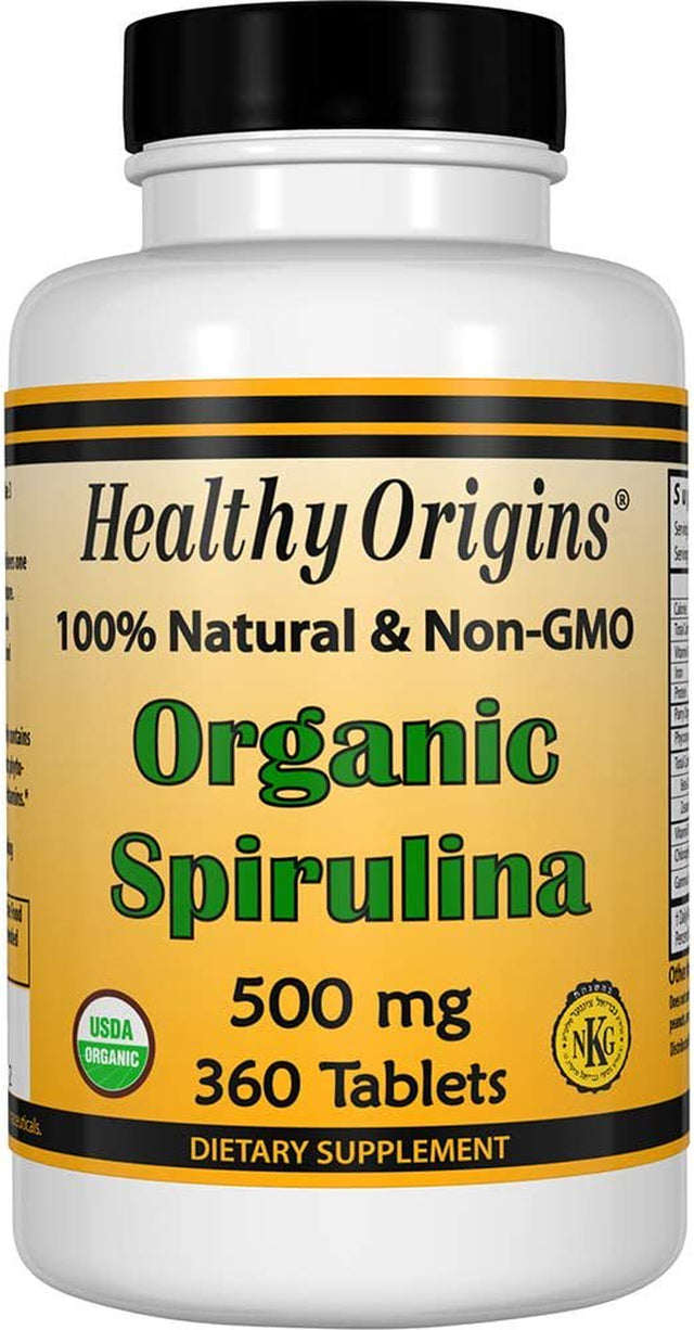 Healthy Origins Organic Spirulina 500 Mg (Organic Certified, Kosher Certified, Natural, Non-Gmo, Gluten Free, Vegan Superfood), 360 Tablets