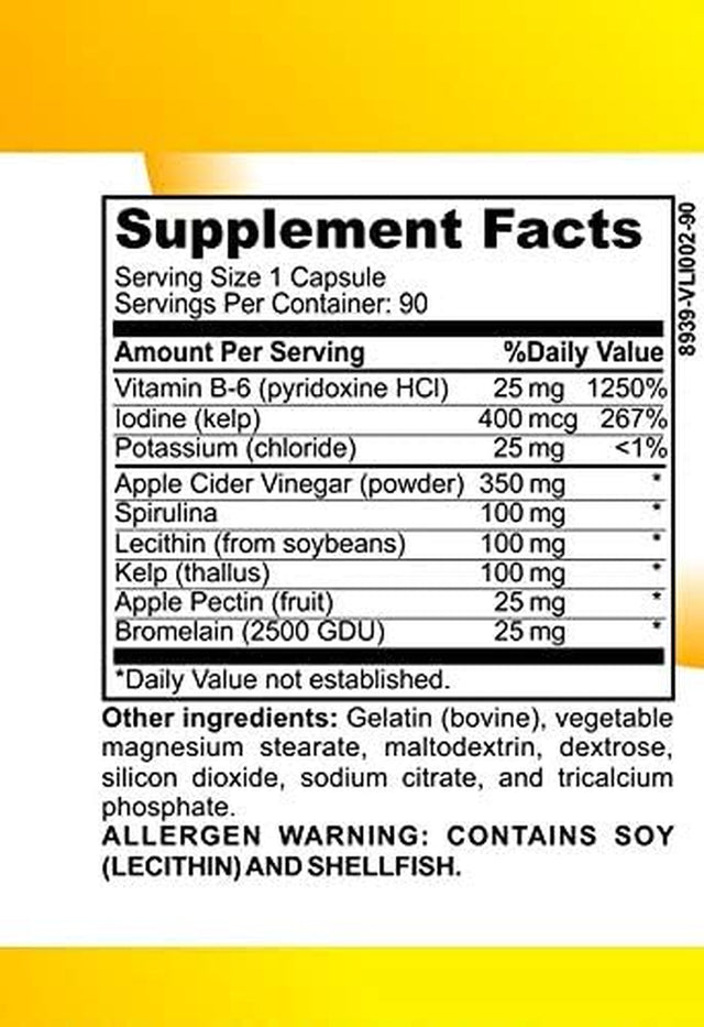 - Superior formula: We take our formula a step further by providing you with some essentials that pair tremendously well with Apple Cider Vinegar; This includes some vital ingredients like Spirulina, Lecithin, Kelp, Apple Pectin, Bromelain, Potassium and Vitamin B-6