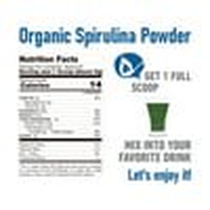 100% Organic Spirulina - No other ingredients, no additives, USDA certified organic, non-GMO, gluten-free.,Nutrition Queen - Rich in vegan protein, enzymes, fiber, amino acids, flavonoids, immune vitamins, minerals, chlorophyll, phytonutrients and antioxidants.,Hidden treasures - Our organic spirulina powder can be added almost anywhere. spirulina has a slight seaweed smell and you can easily overcome the smell by adding extra fruits in your smoothie or any other drinks.,Perfect Packaging - Our concentrated organic spirulina powder is carefully packaged in an easy-to-use ziplock bag with a sealable strip design for easy opening and storage.,Organic and safe to buy - We care about your body and health, provide you with high quality spirulina powder!