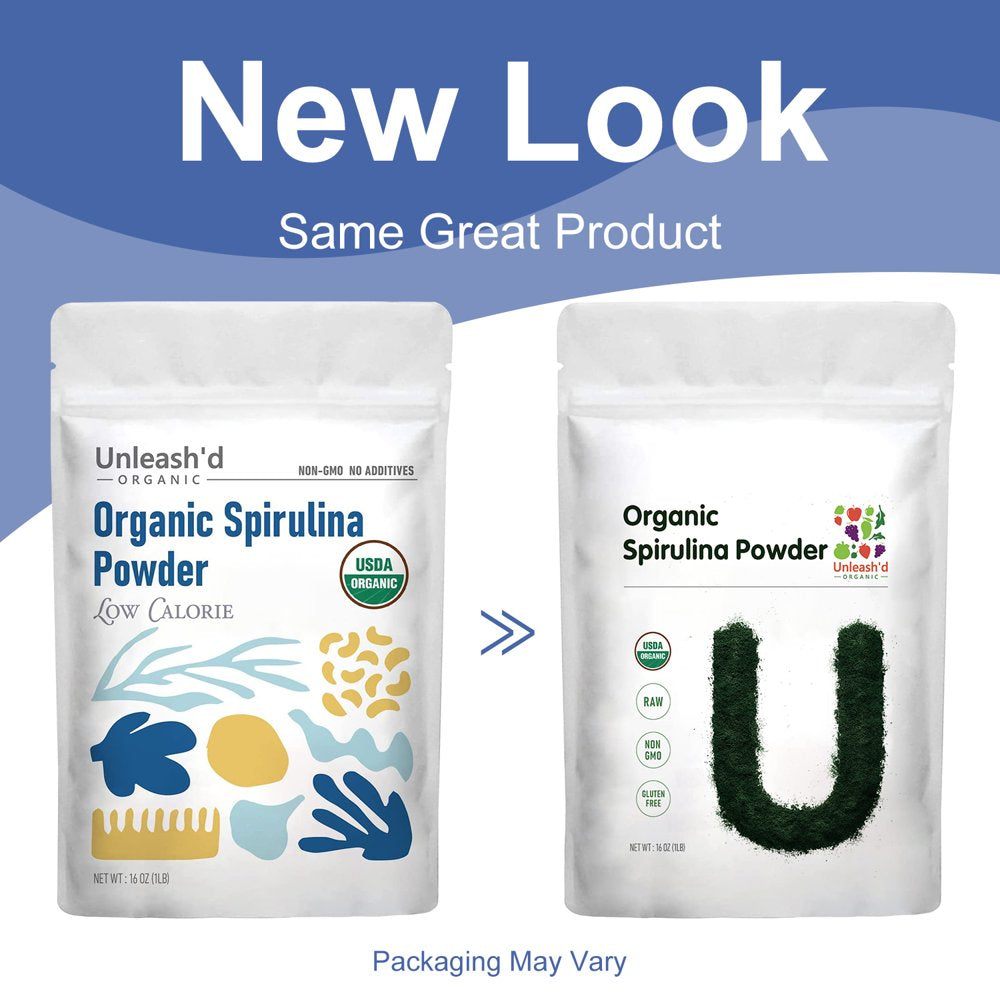 Organic Spirulina Powder 16 Ounce (Packaging May Vary) Superfood, Spirulina Powder Organic for Smoothies, 100% Pure and Vegan, All-Natural, Non-Irradiated and Non-Gmo