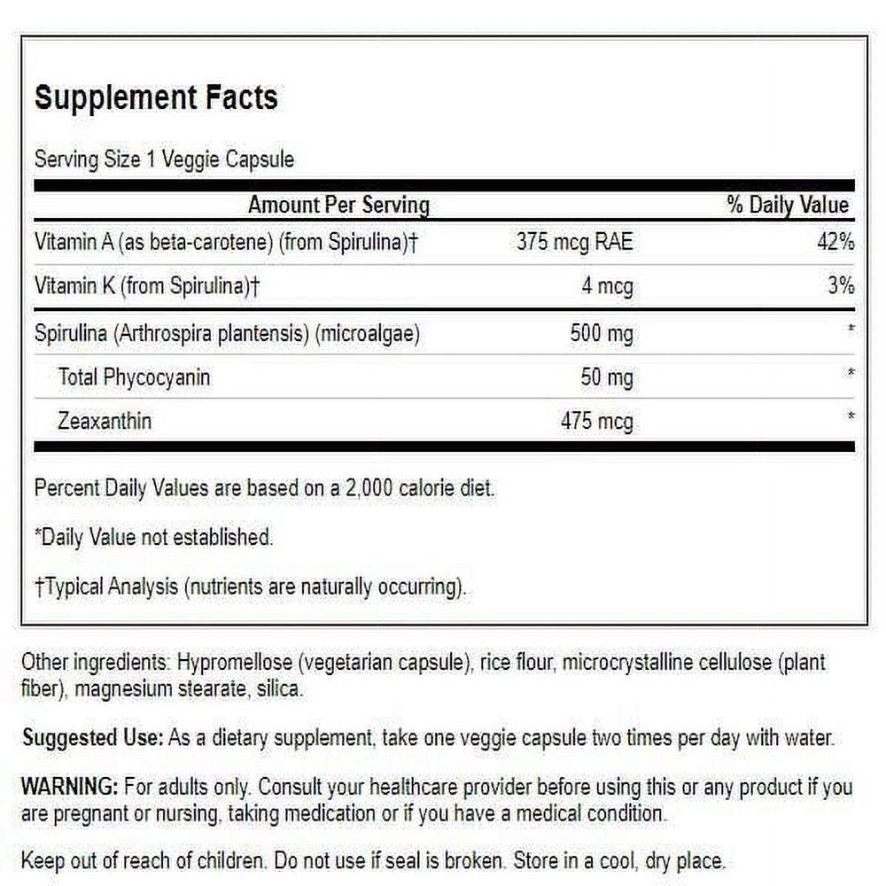 Swanson Std Spirulina Blue-Green Algae 10% Phycocyanin 500 Mg 90 Veggie Capsules - 1 Pack is backordered and will ship as soon as it is back in stock.