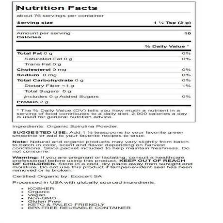 Nutricost Organic Spirulina Powder Unflavored -- 2 Lb