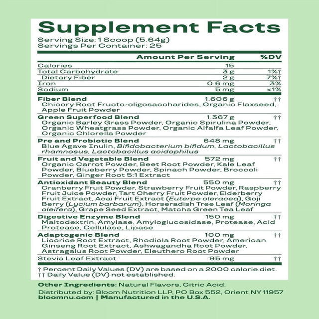 - Includes a 5oz container of Bloom Nutrition's best-selling Mango Greens & Superfood Powder