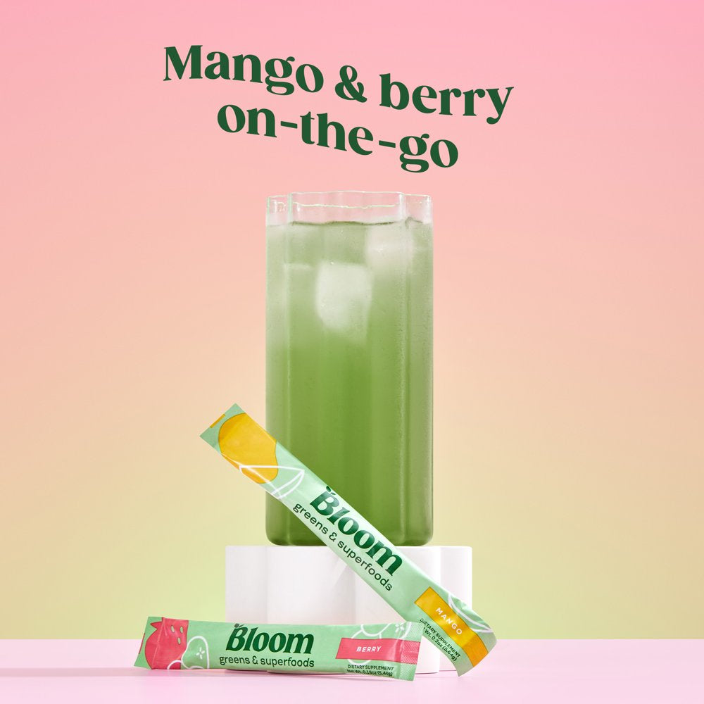 Bloom Nutrition Greens & Superfoods Powder Sticks, Mango and Berry, 10 Count