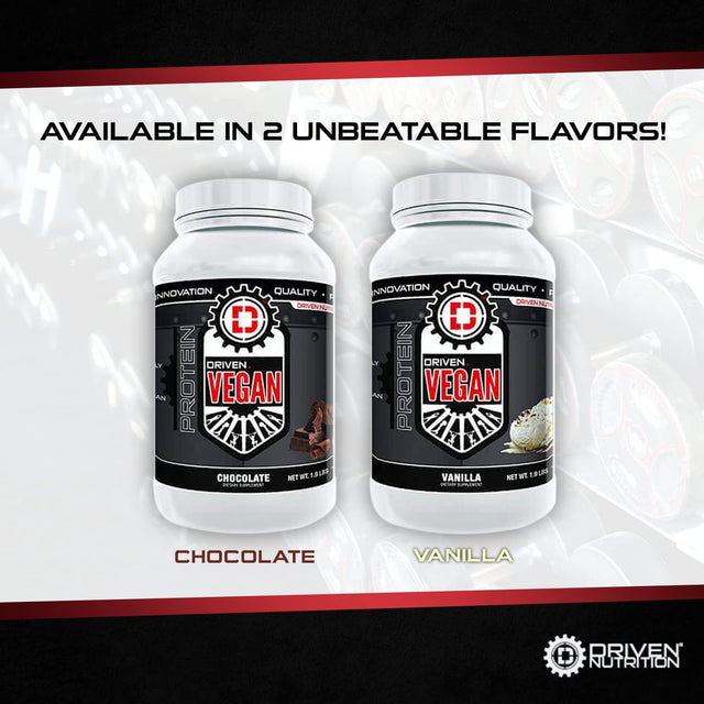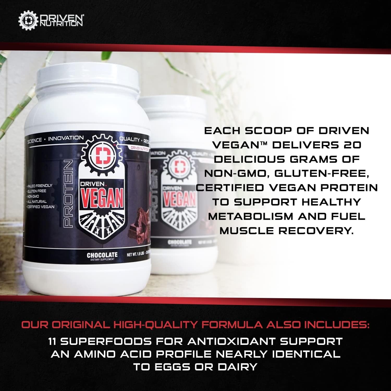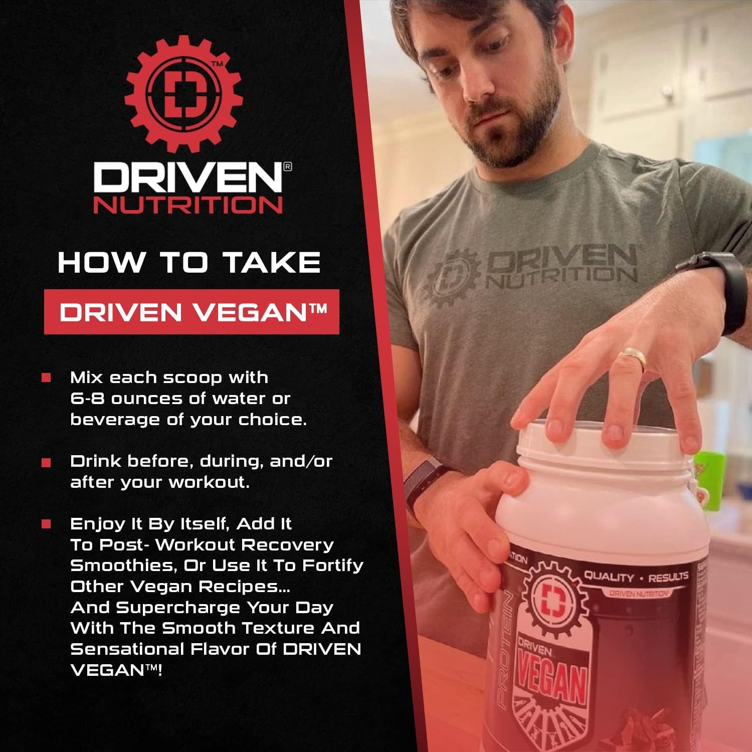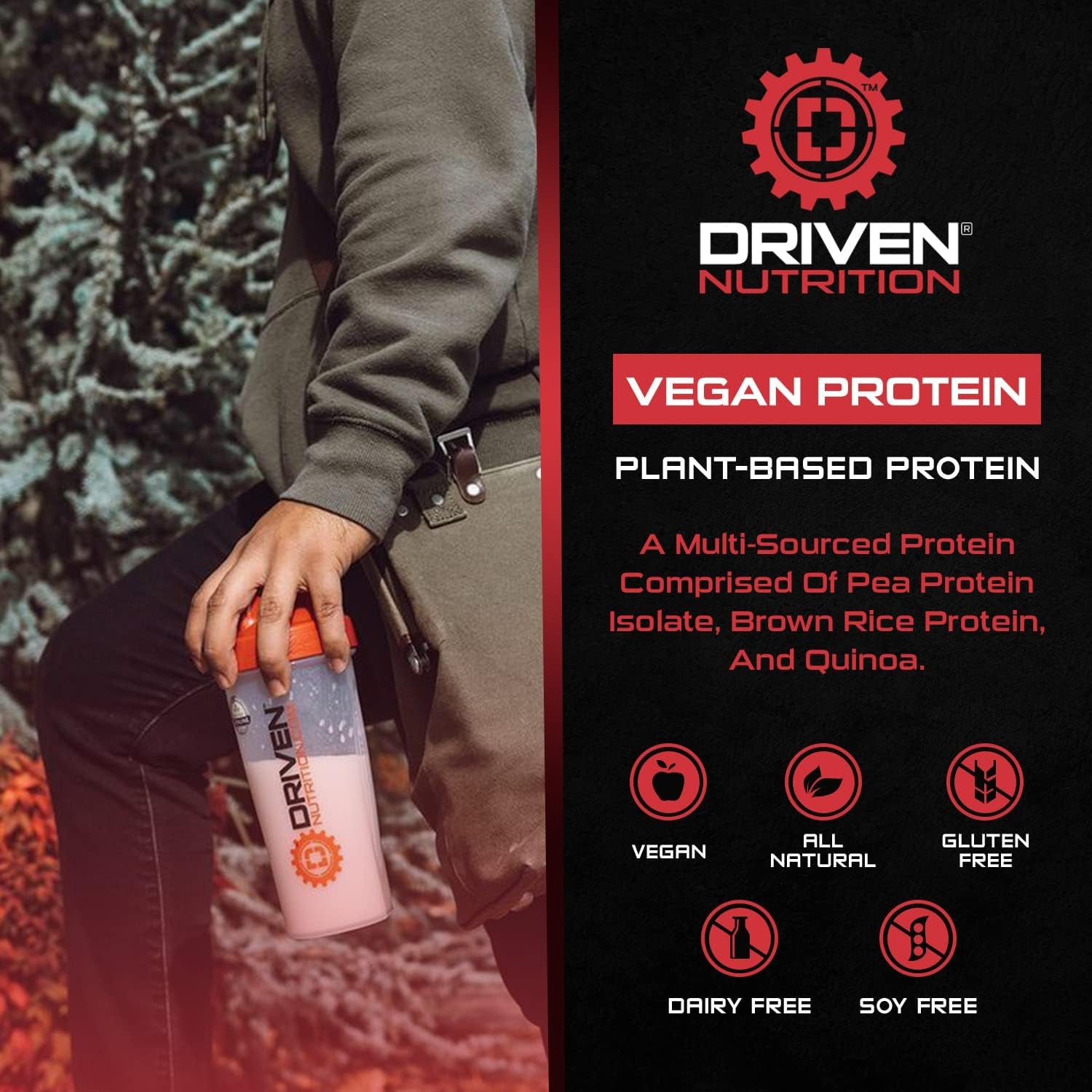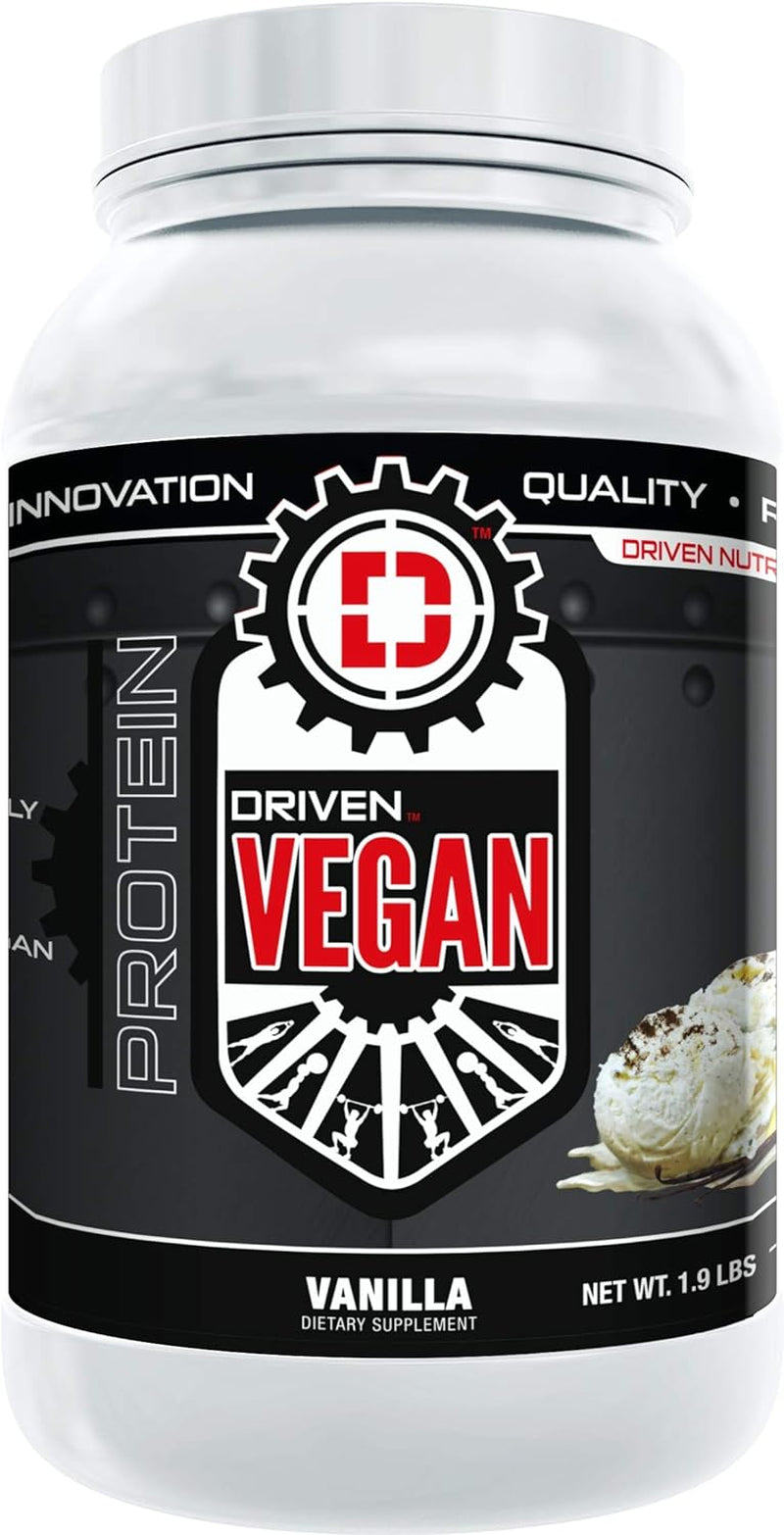Driven Vegan Protein Powder (2 Lbs) - 100% Plant-Based, Essential Amino Acids + Antioxidant-Rich Superfoods - Clean, Non-Dairy, High-Fiber - Build Muscle & Burn Fat - Post-Workout Recovery- Vanilla