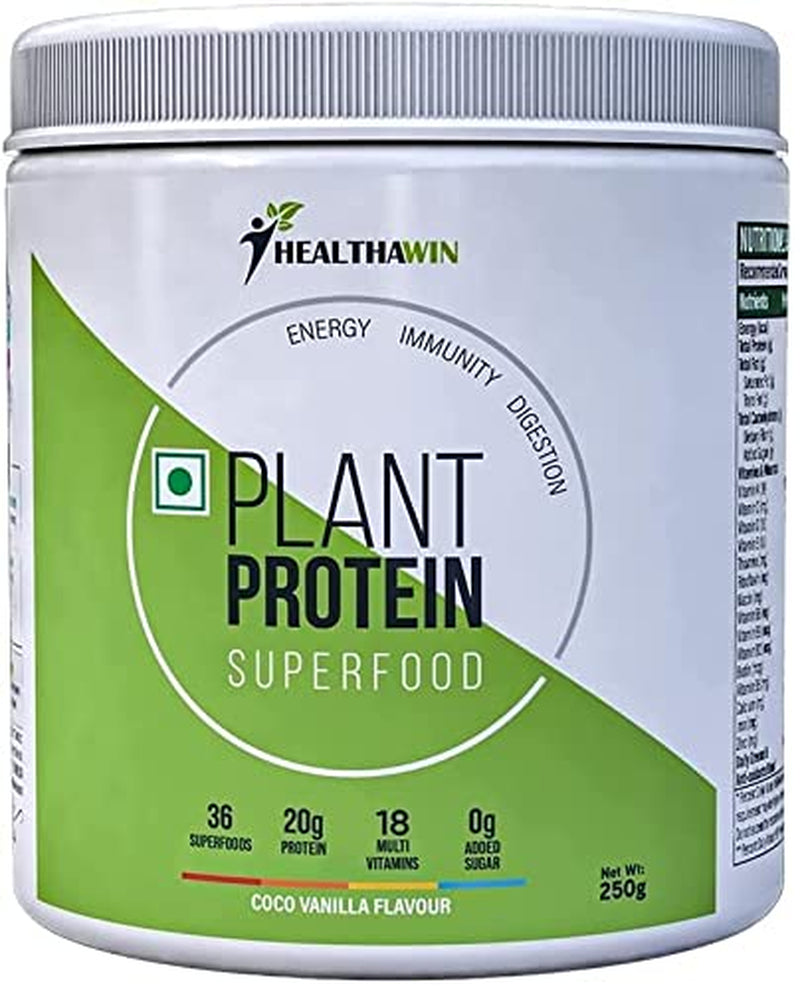 Healthawin Plant Protein with 36 Superfoods & 20 Grams of Protein with Essential Vitamins and Minerals for Boosting Immunity, Energy and Better Digestion., 250 Grams Coco Vanilla Flavour