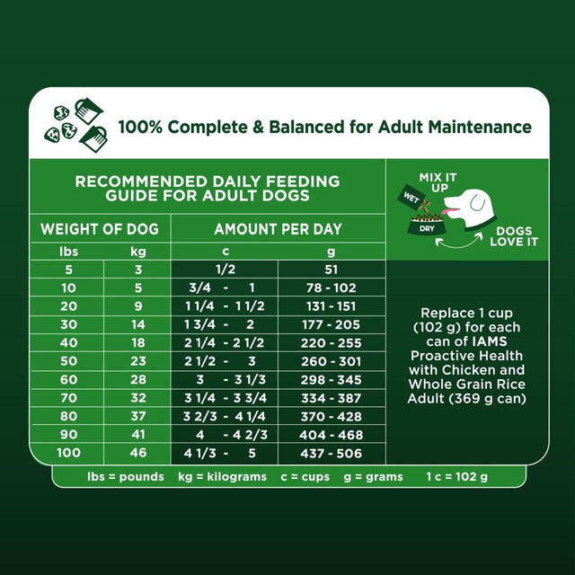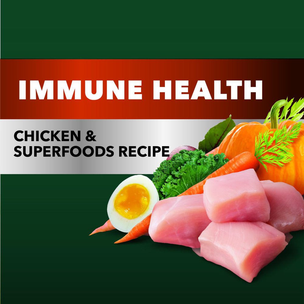 IAMS Advanced Health Chicken and Superfoods Recipe Dry Dog Food, As pet parents, we all want to feel confident that we are doing the best for our pets. IAMS Advanced Health IMMUNE HEALTH Chicken Superfoods Recipe dry dog food is designed with ingredients to support your dog whole-body health. This tasty kibble features live probiotics and an antioxidant boost with a blend of Vitamins C + E to help support your dog immune system. This chicken-first recipe with an exclusive Superfoods Medley is formulated without artificial flavors or preservatives. With this premium-tailored recipe, you can be confident that your dog will always be at their best. Trace amounts may be present due to potential cross-contact during manufacturing.