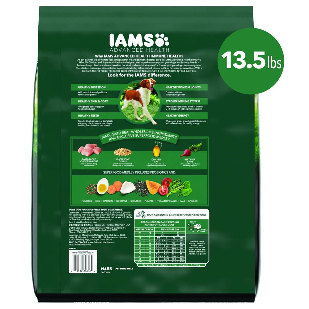 - CONTAINS ONE (1) 13.5 LB. BAG of IAMS Advanced Health IMMUNE HEALTH Chicken and Superfoods Recipe Adult Dry Dog Food
