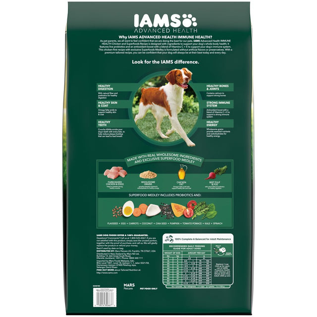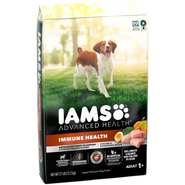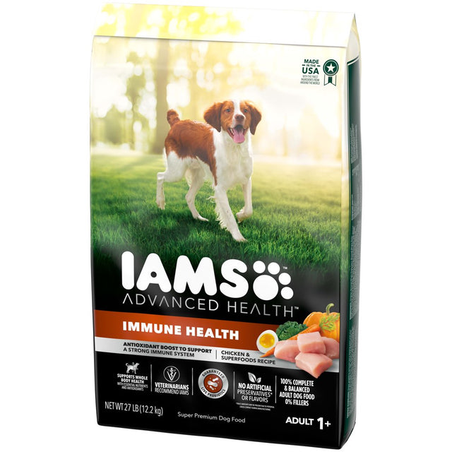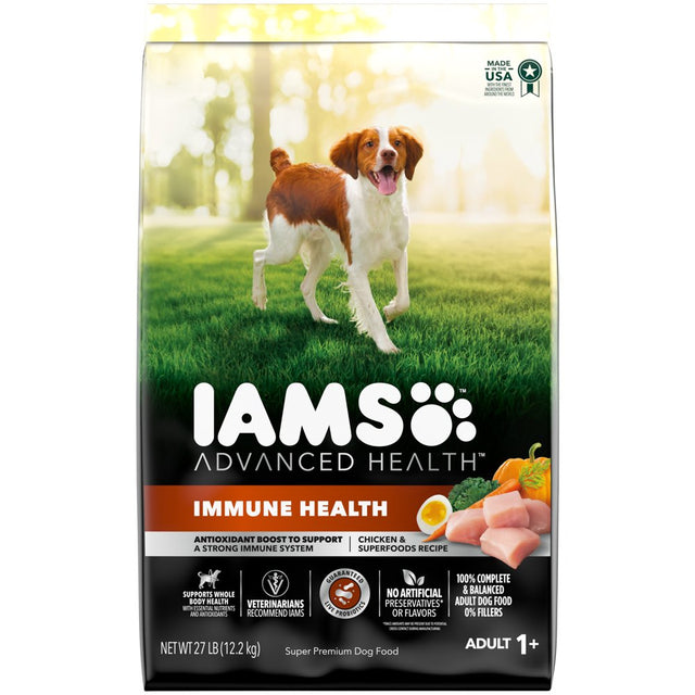 - CONTAINS ONE (1) 27 LB. BAG of IAMS Advanced Health IMMUNE HEALTH Chicken and Superfoods Recipe Adult Dry Dog Food