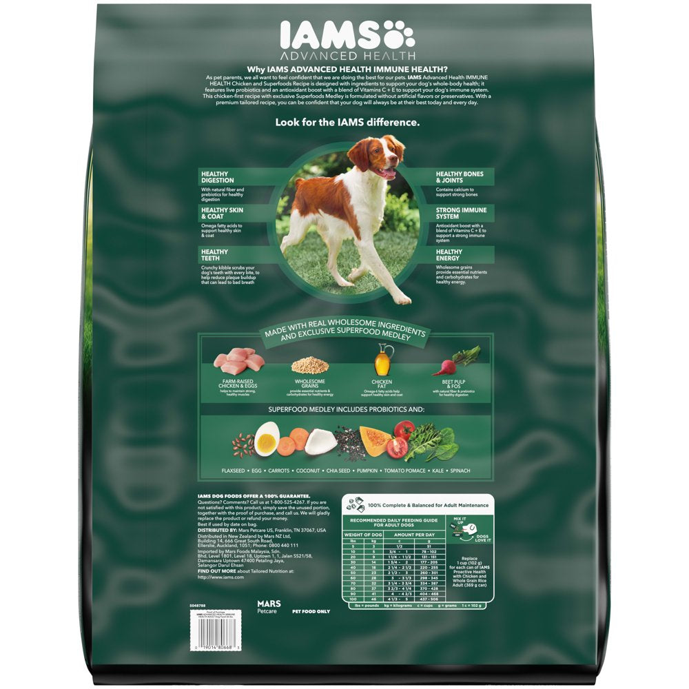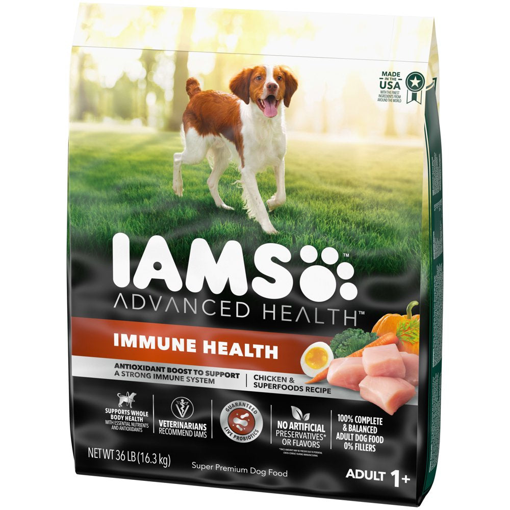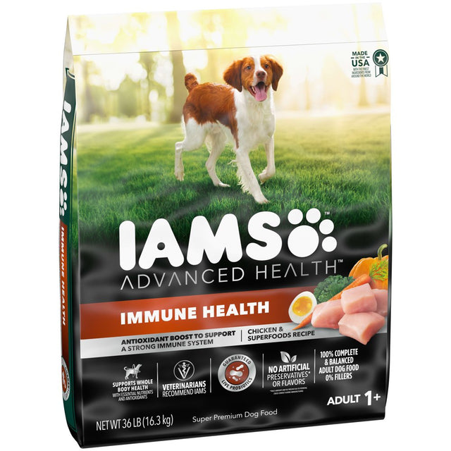 - CONTAINS ONE (1) 36 LB. BAG of IAMS Advanced Health IMMUNE HEALTH Chicken and Superfoods Recipe Adult Dry Dog Food