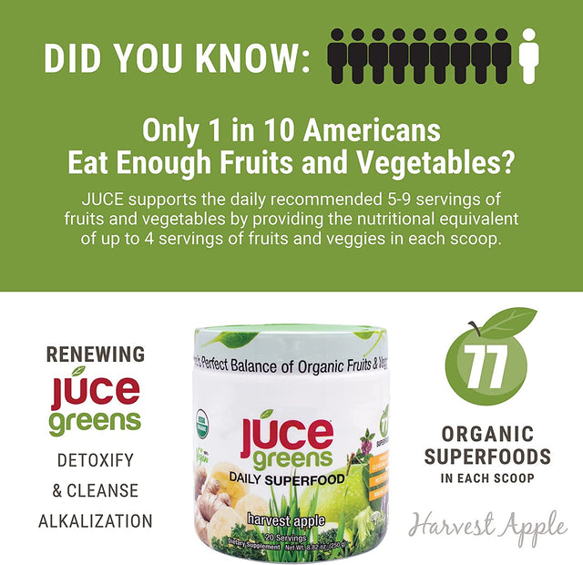 JUCE Green Superfood Powder, Organic Fruits and Veggies Supplement W/ 77 Superfoods plus Prebiotic Probiotic Blend, Harvest Apple Flavor - 20 Servings (230 G)…