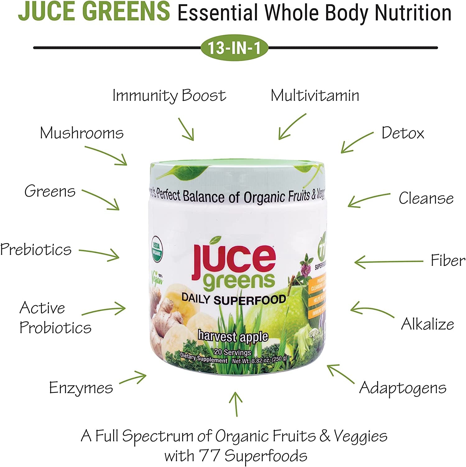 JUCE Green Superfood Powder, Organic Fruits and Veggies Supplement W/ 77 Superfoods plus Prebiotic Probiotic Blend, Harvest Apple Flavor - 20 Servings (230 G)… - Greens / 20 Servings (Pack Of 1) is backordered and will ship as soon as it is back in stock.