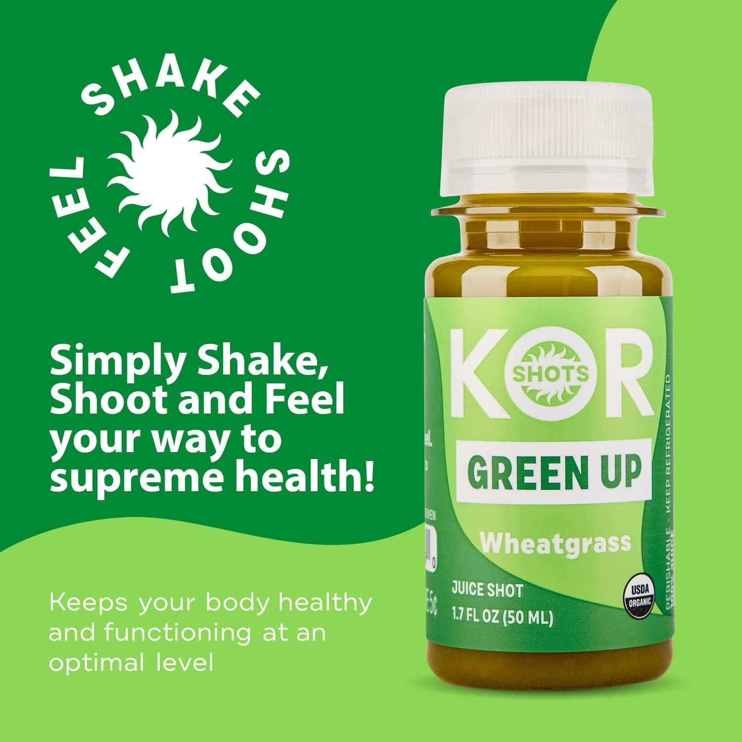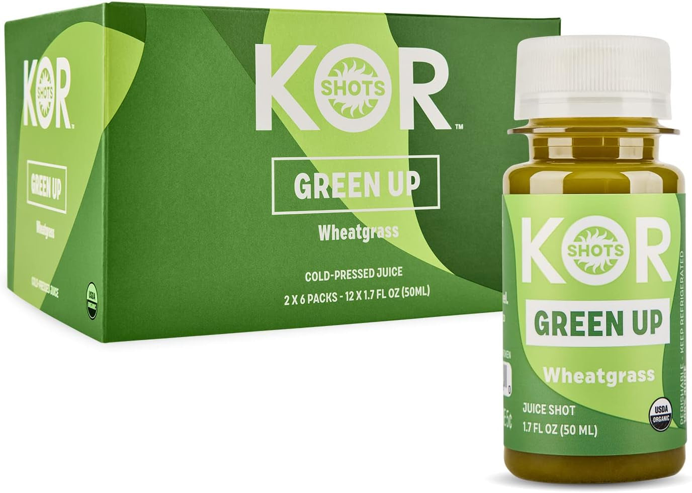 Kor Shot Wheatgrass Ginger Spirulina Shot - 24 Pack X 1.7 Fl Oz - Green up Shot - Daily Greens Superfoods Shot - USDA Certified Organic - Green Up is backordered and will ship as soon as it is back in stock.