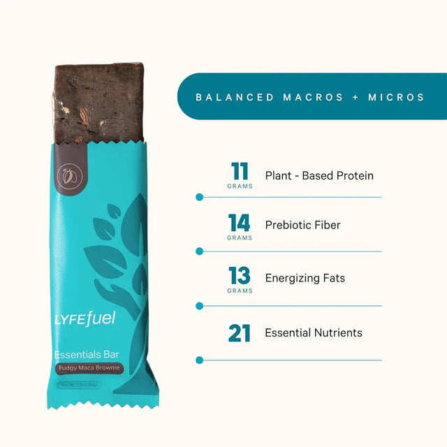 Meal Replacement Bar by Lyfefuel - Vegan Protein Bar Packed with Organic Superfoods, Fiber & 21 Essential Nutrients from 100% Plant Based Whole Foods (Fudgy Brownie - Box of 10) Gluten Free, Paleo