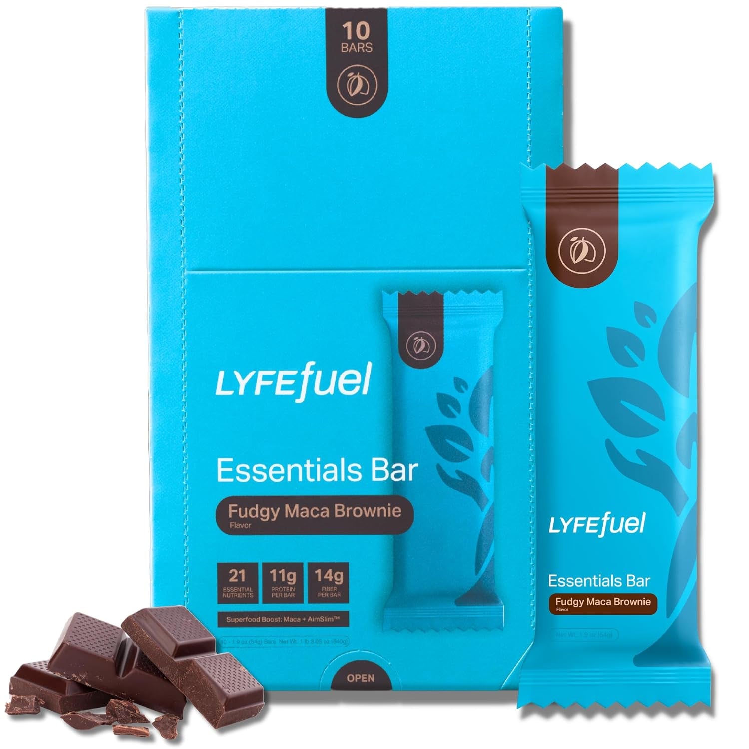 Meal Replacement Bar by Lyfefuel - Vegan Protein Bar Packed with Organic Superfoods, Fiber & 21 Essential Nutrients from 100% Plant Based Whole Foods (Fudgy Brownie - Box of 10) Gluten Free, Paleo - Chocolate Brownie is backordered and will ship as soon as it is back in stock.