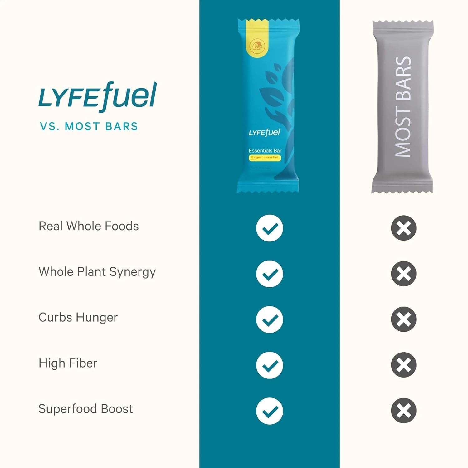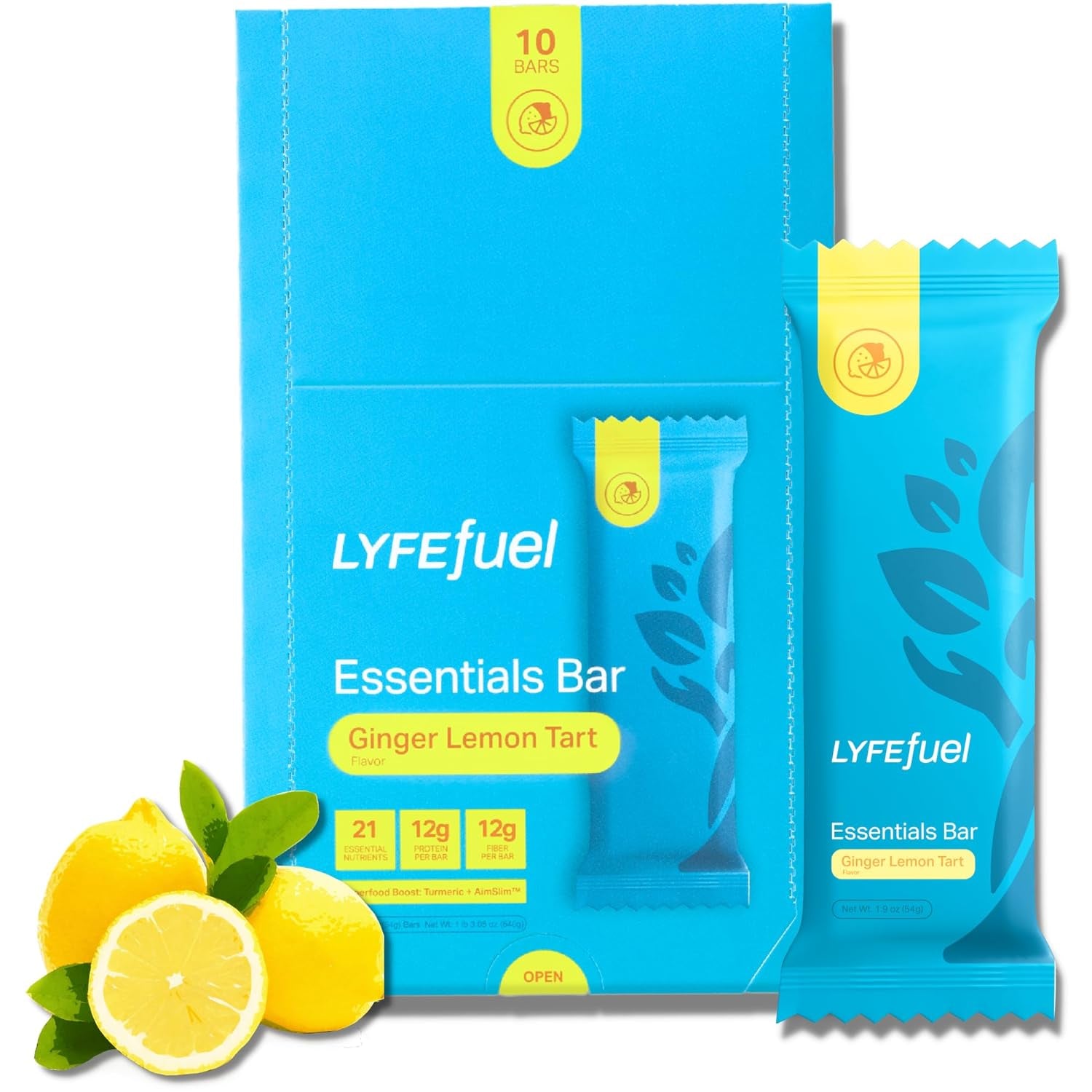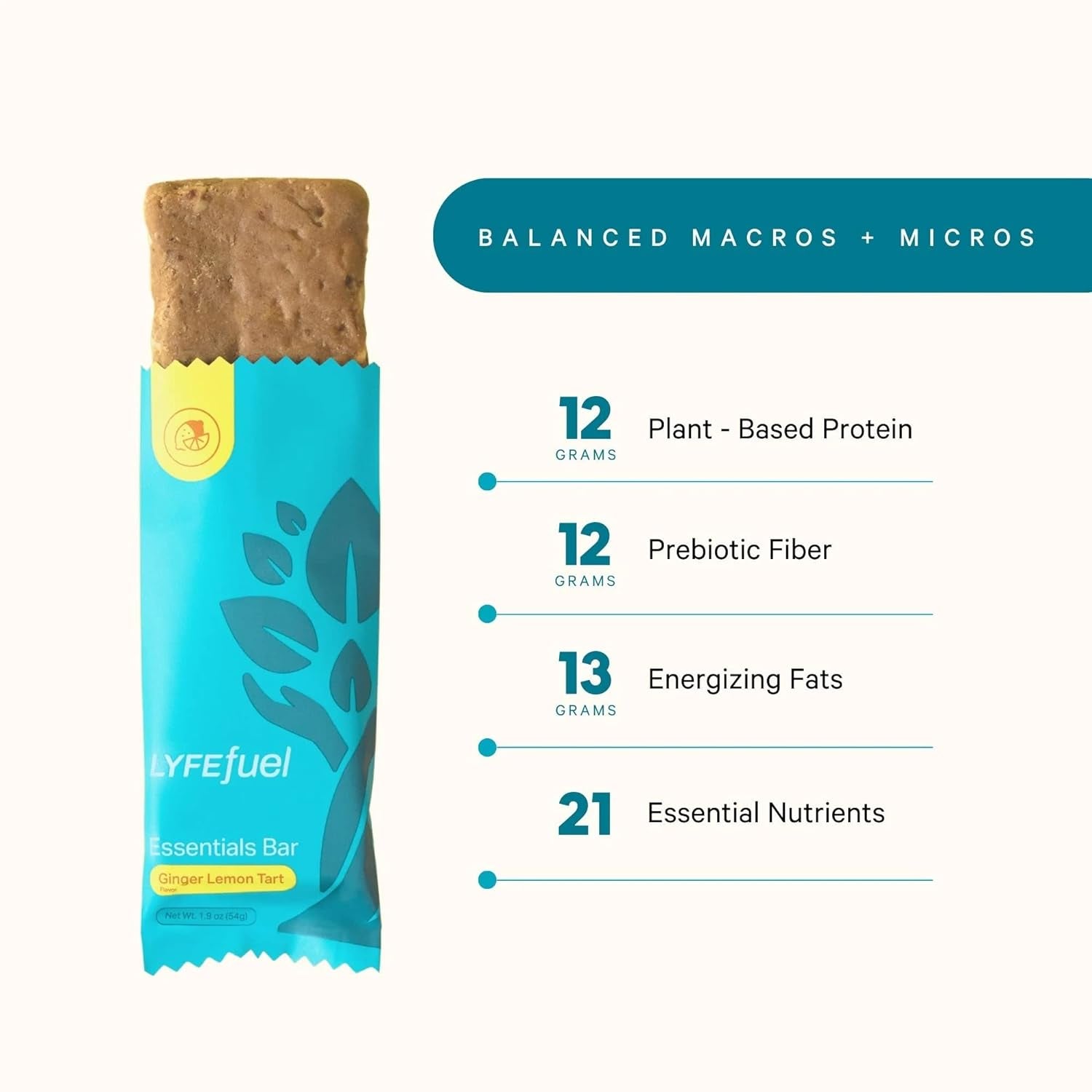 Meal Replacement Bar by Lyfefuel - Vegan Protein Bar Packed with Organic Superfoods, Fiber & 21 Essential Nutrients from 100% Plant Based Whole Foods (Lemon Ginger Tart - Box of 10) Gluten Free, Paleo