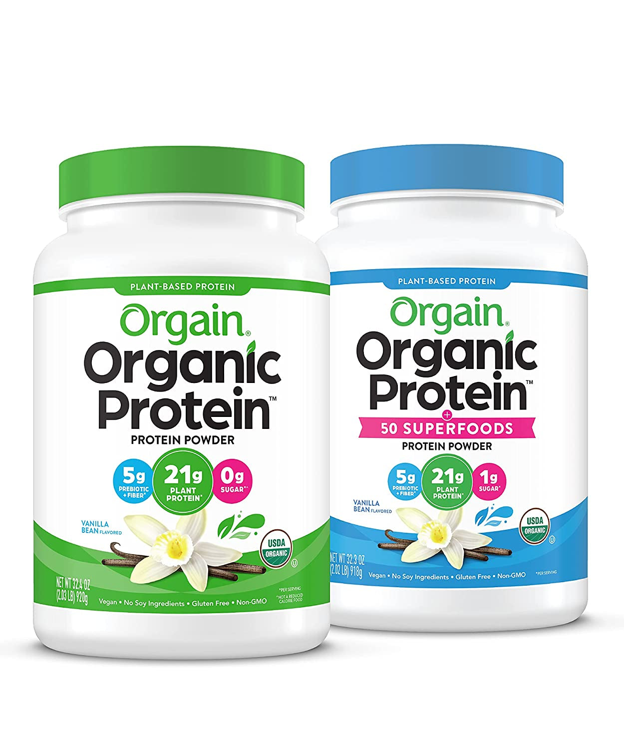 - Includes 1 (2.03 lb) Orgain organic vegan vanilla bean protein powder and 1 (2.02 lb) Orgain organic protein & superfoods vanilla bean powder.