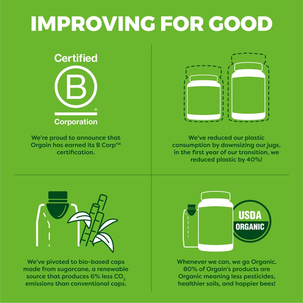 - USDA ORGANIC & CERTIFIED PLANT-BASED: To ensure we are delivering on high-quality products, we use third parties to verify that we are certified organic and certified plant based.