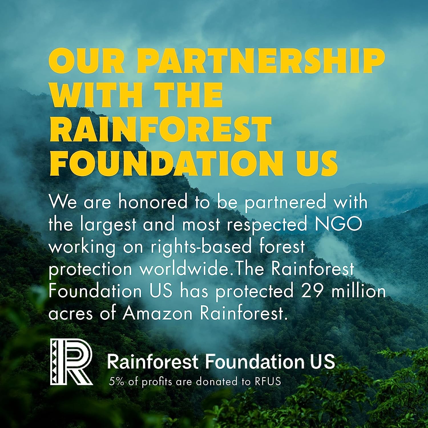 We are honored to be partnered with the largest and most respected NGO working on rights-based forest protection worldwide. The Rainforest Foundation US has protected 29 million acres of Amazon Rainforest.