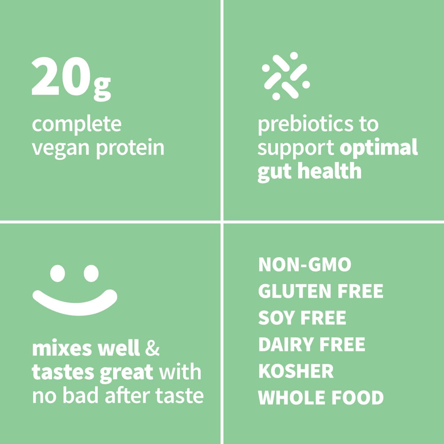 • Organic, multi-source plant protein made from nutrient-dense superfoods with gut-healthy prebiotics and a complete amino acid profile.