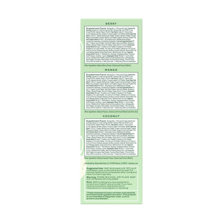 Bloom Nutrition Greens & Superfoods Powder Sticks, Mango, Berry, and Coconut, 12 Count
