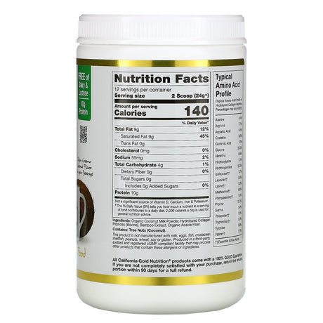 California Gold Nutrition SUPERFOODS - Collagen Coconut Creamer, 10.2 Oz (288 G)