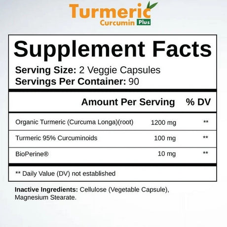 Vitapost Turmeric Curcumin plus Supplement for Joint, Muscle, Immune System Support - 180 Capsules