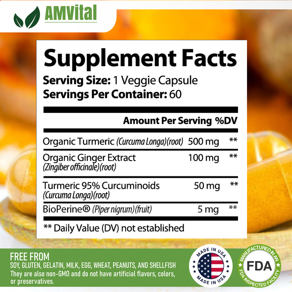 | Product Name | AMVital Turmeric Capsules with Ginger & BioPerine, Natural Joint Support, Tumeric Extract Supplement |
