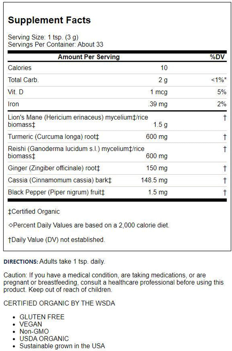 Brain & Body Powder - Support for a Sound Mind & Body - Lion'S Mane, Turmeric, Reishi & Ginger (3.5 Ounces)