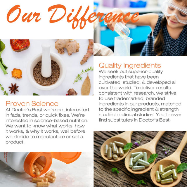 Doctor’s Best Curcumin Phytosome® with Meriva® uses patented Phytosome® technology which allows for curcumin nutrients (the curcuminoids) to be more electively absorbed. Curcumin is the yellow pigment of turmeric and has a long history in Ayurvedic and Chinese medicine. As a powerful antioxidant and free radical scavenger, it has many traditional uses. Curcumin is one of the most widely researched botanicals in the literature. Curcumin Phytosome®, with sunflower lecithin, offers superior bioavailability.* At Doctor’s Best, we lead with science. Our products are backed by research and crafted using pure ingredients carefully sourced from around the globe. Since 1990, we have dedicated ourselves to providing highly effective nutritional supplements that enable you to live a healthier lifestyle. We want nothing more than to see you and your family thrive!