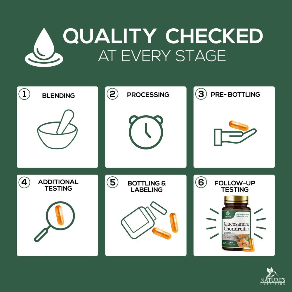 - Trusted Formula: Our Glucosamine Chondroitin Capsules are bottled in the United States following strict cGMP guidelines and 3rd party tested for purity and quality