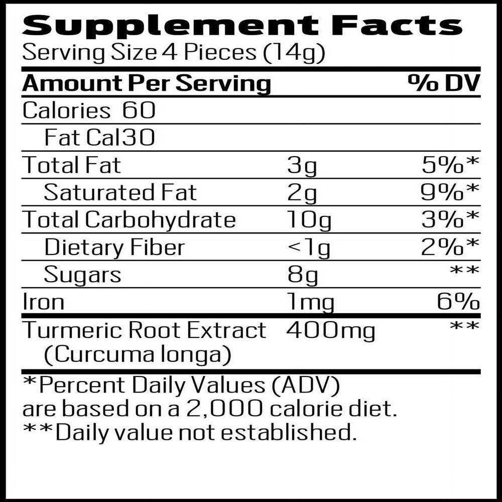 The Good Day Chocolate Turmeric Supplement supports healthy joints, muscles and nervous system function. Turmeric is an ancient superfood known for easing inflammation and boosting brain function. Wrap that in chocolate and it?s a no brainer! 800mg of turmeric in every box.