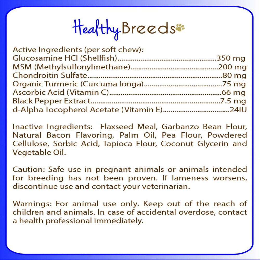 Healthy Breeds Dog Hip and Joint Care Supplement Soft Chews for Belgian Malinois, Bacon Flavor, Gluten & Grain Free, Glucosamine Chondroitin Organic Turmeric Support 120 Count
