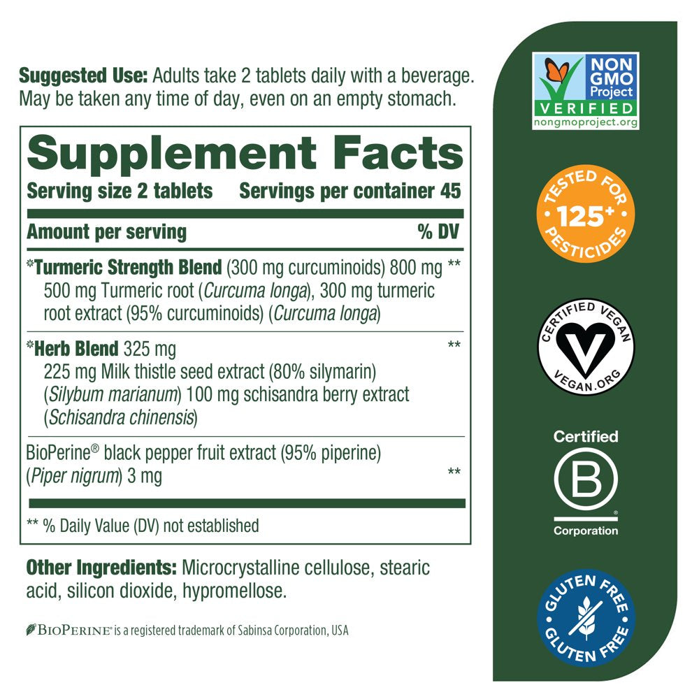 Support liver health with MegaFood Turmeric Strength - Liver. Turmeric Strength - Liver features a blend of turmeric root and standardized extract to deliver beneficial curcuminoids. Curcuminoids are natural polyphenol compounds and a major component in turmeric. Turmeric has been used in traditional health practices for centuries for its wellness benefits. This targeted formula also features BioPerine(R), a patented black pepper extract that helps support the absorption of curcumin. Includes milk thistle, a botanical source of silymarin which delivers antioxidants and nutrients to help support liver health.