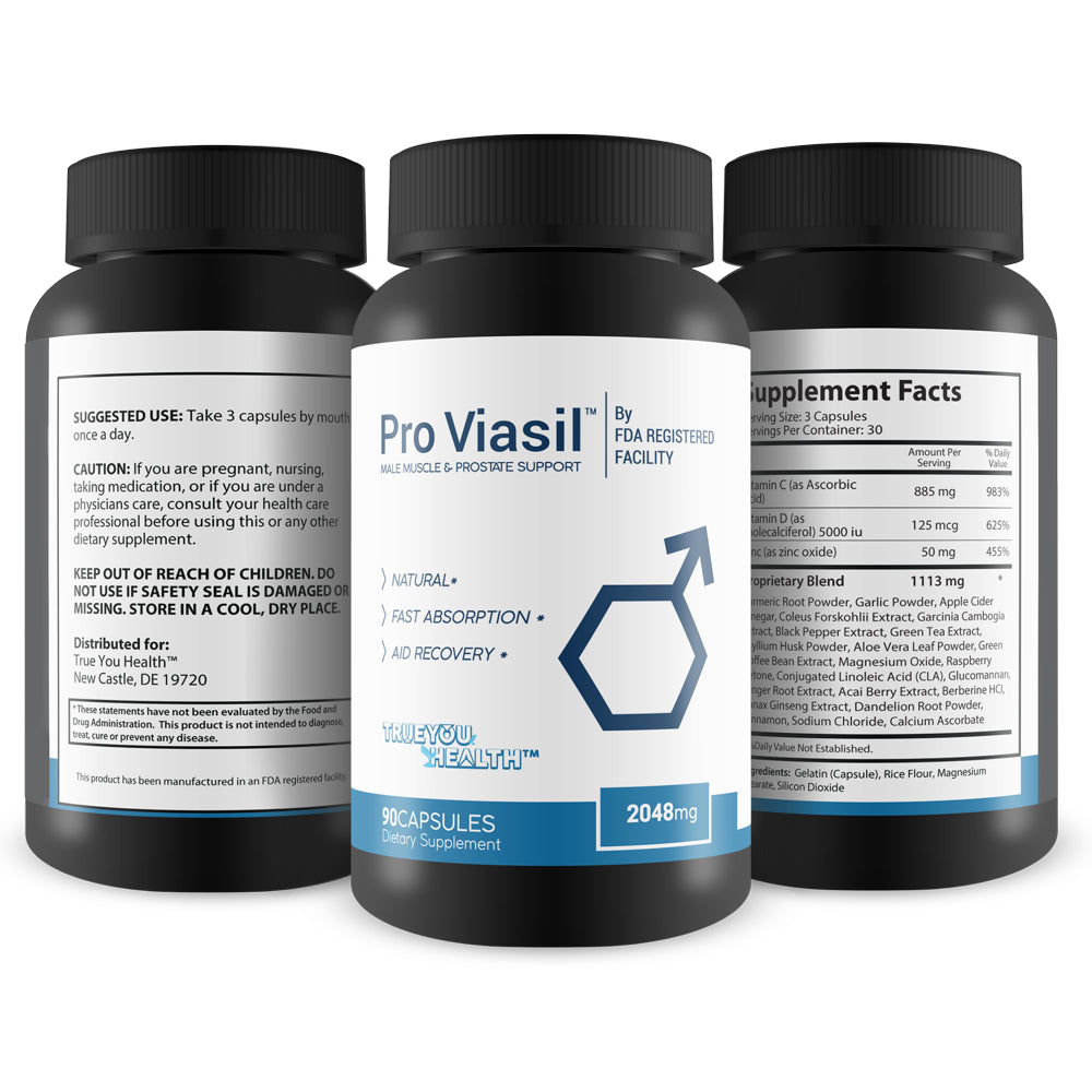 Pro Viasil is an all-in-one prostate supplement designed to promote prostate health, normal prostate size, and healthy prostate function. The all natural prostate formula contains 20+ vitamins, minerals, herbs, and antioxidants to provide total male prostate support and additional health benefits. It contains ingredients such as Vitamin D, Vitamin C, Green Tea Extract, and Panax Ginseng.