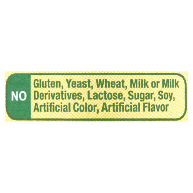 • No gluten, yeast, wheat, milk, soy, lactose, or sugar