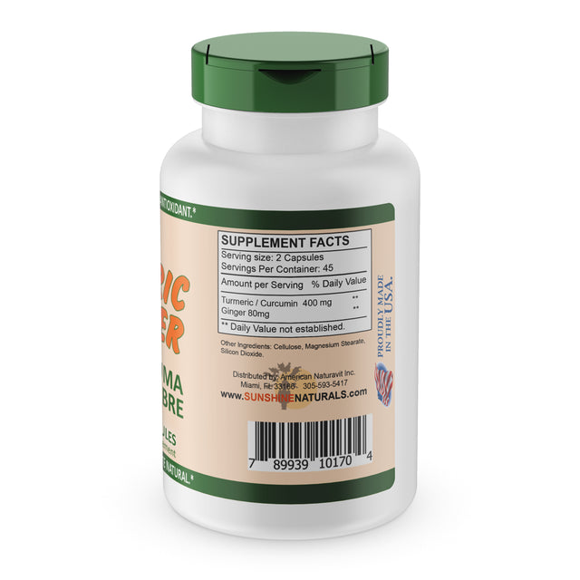 Sunshine Naturals Turmeric Curcumin plus Ginger, anti Inflammatory Pills Dietary Supplements - 90 Capsules