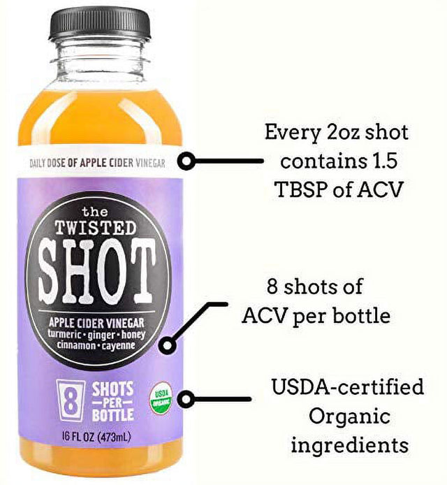 The Twisted Shot | Organic Apple Cider Vinegar Shots with Turmeric, Ginger, Cinnamon, Honey & Cayenne | Immunity Boost | Wellness | Digestive Aid | Improve Metabolism | Detox | 16Oz Bottle is backordered and will ship as soon as it is back in stock.