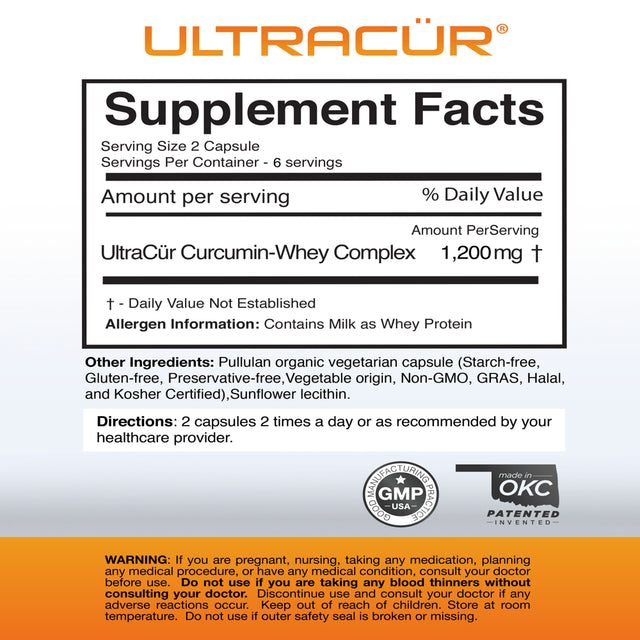 However, because curcumin is so poorly absorbed, these studies required massive doses of curcumin to achieve the blood levels necessary to make a difference. UltraCür curcumin complex can achieve the same levels with only 1 to 2 capsules per day.