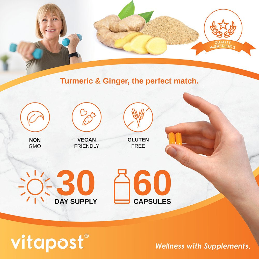 Vitapost Turmeric & Ginger Superfood Blend Supplement with Bioperine - 60 Capsules