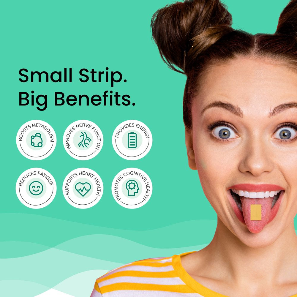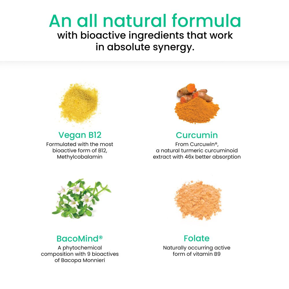 Wellbeing Nutrition Melts Vegan Vitamin B12 (Methylcobalamin), Folate (5-MTHF), Brahmi (Bacopa Monnieri), Curcumin -30 Oral Thin Strips