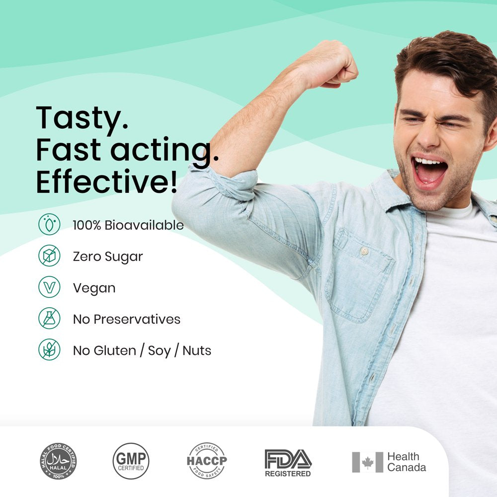 • Advanced German NANO Science (Melts) – FAST ACTING and All Natural Plant Based Vegan B12 + Folate is 95% more bioavailable than traditional tablets/capsules/ gummies. Patented Nano technology converts plant extracts into nanoparticles and the Sublingual quick dissolve delivery system ensures the actives are directly released into the boodstream for complete absorbtion- which means instant action and faster results.