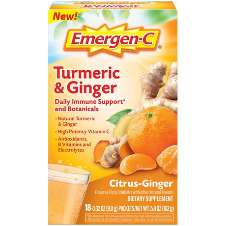Emergen-C Turmeric Ginger Fizzy Drink Mix Citrus-Ginger - 18 Ct