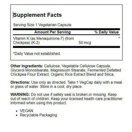 Solaray Vitamin K-2 Menaquinone-7 50 Mcg 30 Veg Caps