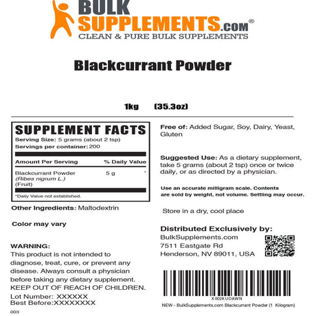 Bulksupplements.Com Blackcurrant Powder, 5G - Heart, Immune, & Kidney Support (5Kg - 1000 Servings)