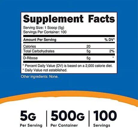 Nutricost D-Ribose Powder 500 Grams - 5000Mg per Serving, Non-Gmo (500 Grams)