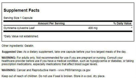 Swanson Herbal Supplements Full Spectrum Gymnema Sylvestre Leaf 400 Mg Capsule 100Ct