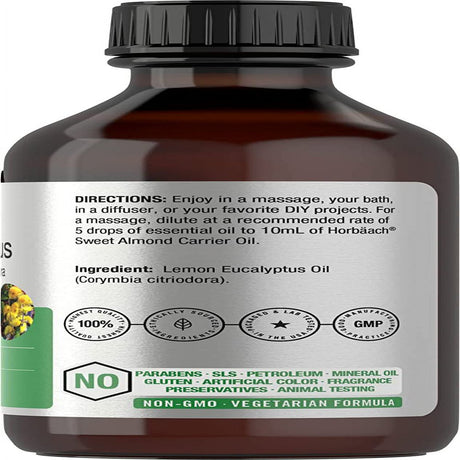 Lemon Eucalyptus Oil | 2 Oz | Natural, Undiluted, GC/MS Tested | by Horbaach