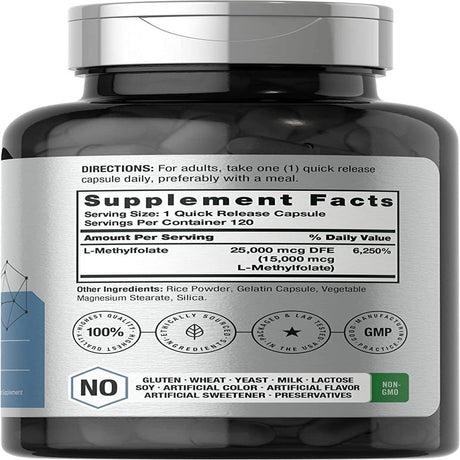 L Methylfolate 15000 Mcg | 120 Capsules | Methyl Folate 5-MTHF | by Horbaach