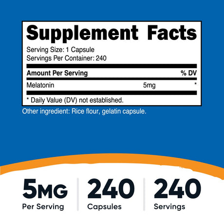 Nutricost Melatonin 5Mg, 240 Capsules - Non-Gmo, Gluten Free Supplement